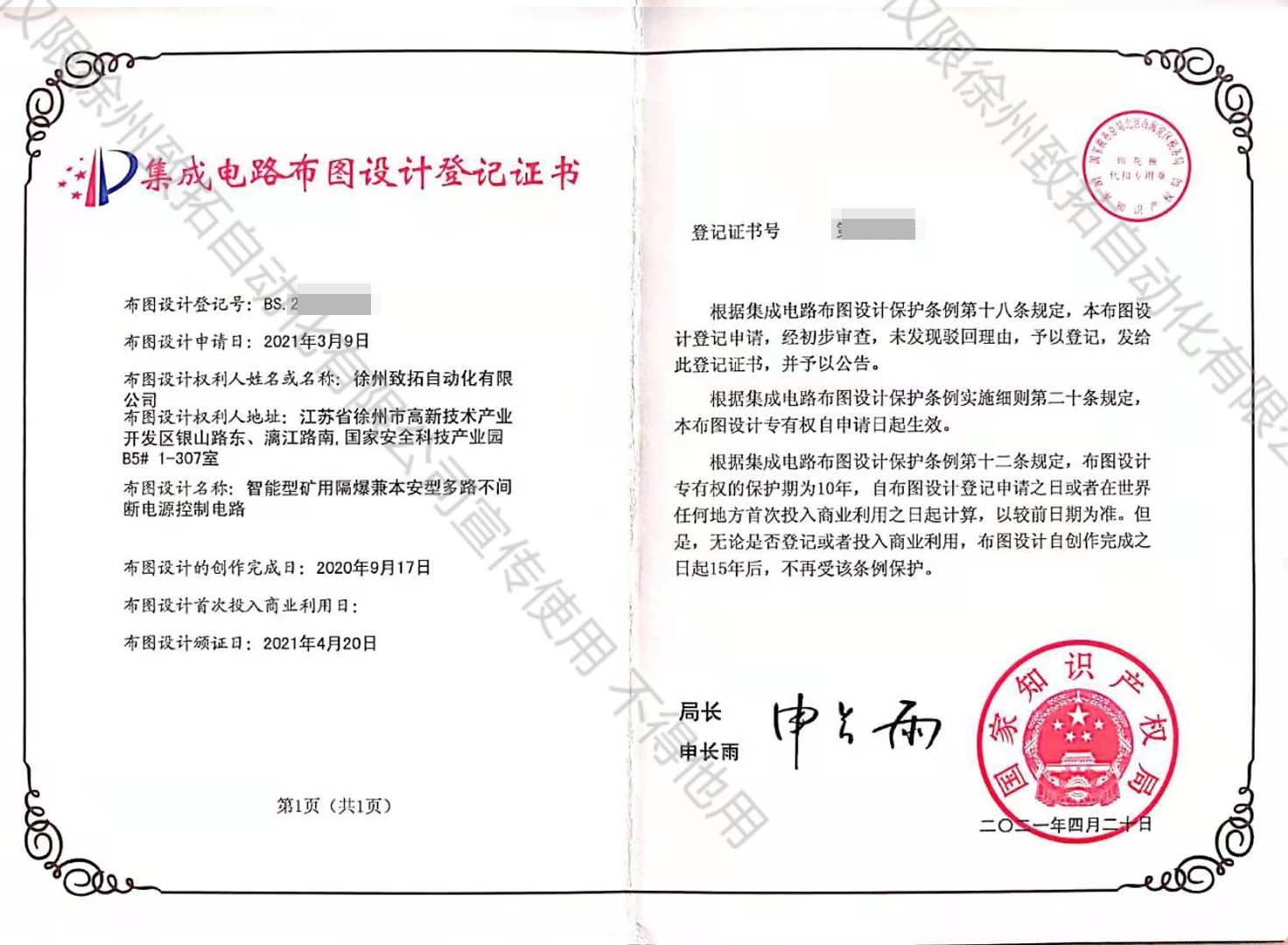 礦用隔爆兼本安型多路不間斷電源控制電路登記證書(shū)